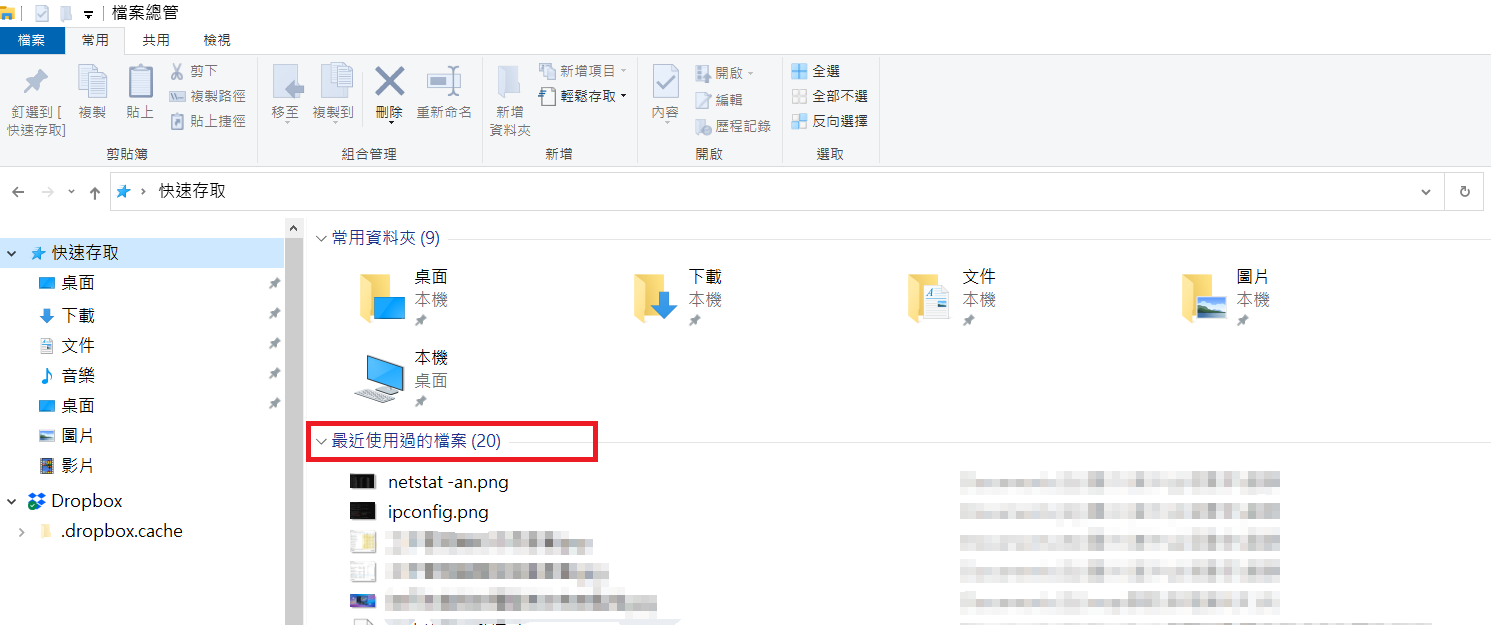 - 點擊導航欄左上角的快速存取,彈出常用資料夾和最近使用的檔案。